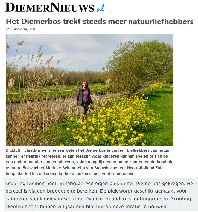 In het Diemer Nieuws van 24 april 2014 en op DiemerNieuws.nl van 25 april 2014 een uitgebreid artikel over het Diemerbos. Ook wij worden hierin genoemd.