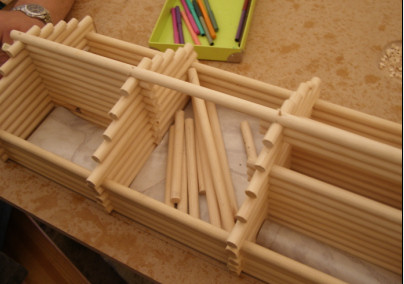 Op het Groepsweekend van 2008, was al een maquette van onze nog te realiseren blokhut, te zien. Althans... de kinderen moesten de onderdelen van de blokhut met speleltjes bij elkaar verdienen, om zo stapje bij stapje de blokhut steeds meer vorm te geven. Hiernaast ziet u de maquette in aanbouw.